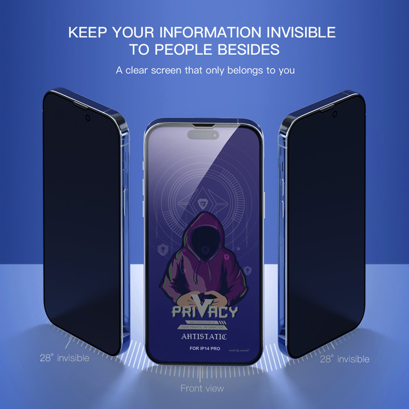 Xiaomi Redmi 14C előlapi üvegfólia, HD edzett, hajlított, fekete keret, betekintés védelem, Full Glue, Mletubl Privacy