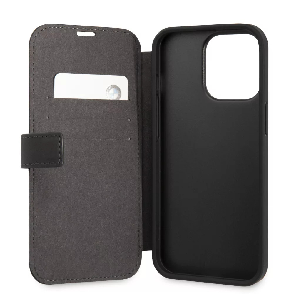 iPhone 13 Pro (6,1") könyvtok, oldalra nyíló tok, fekete, M Collection Carbon Stripe (BMBKP13LPUCARTCBK)