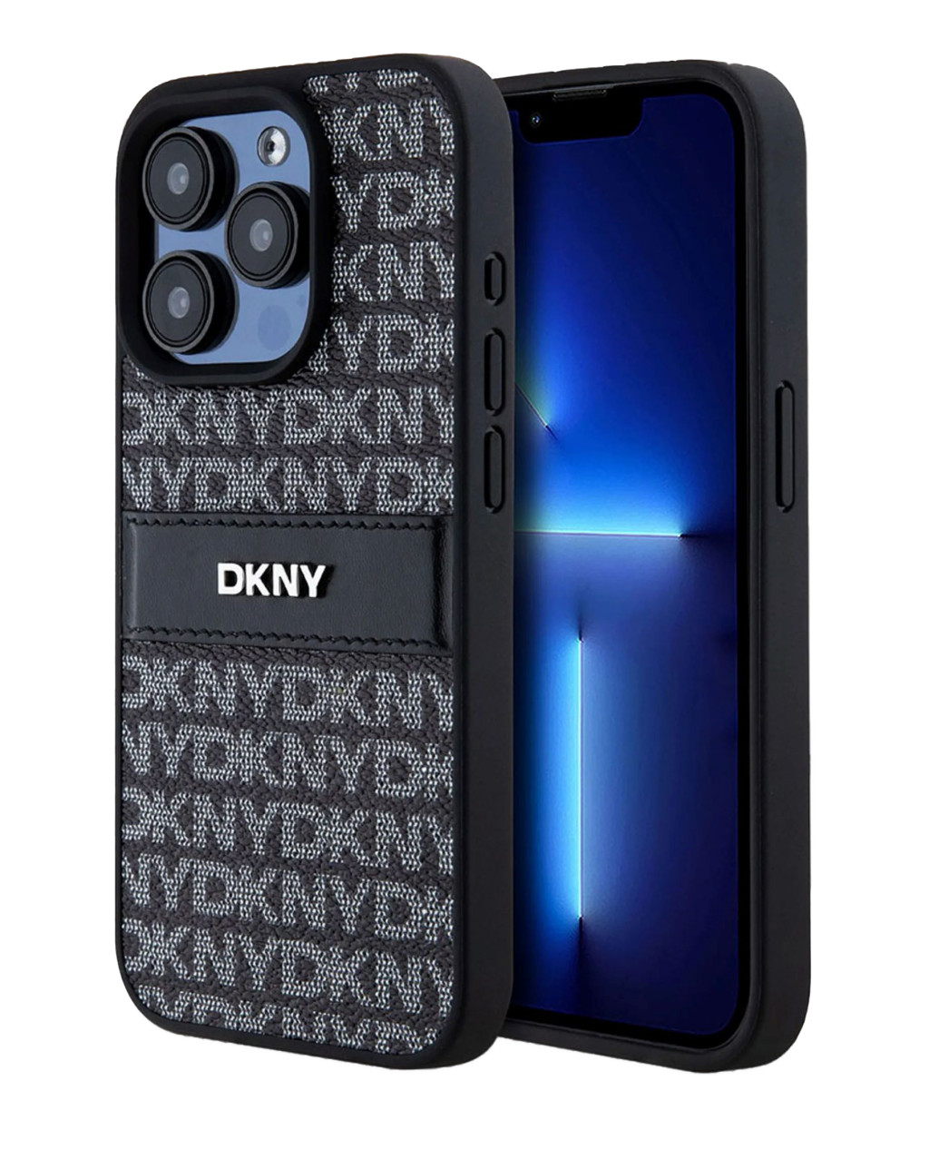 iPhone 15 Pro (6.1") hátlap tok, PU / PU bőr, mintás, fekete, DKNY PU Leather Repeat Pattern Tonal Stripe