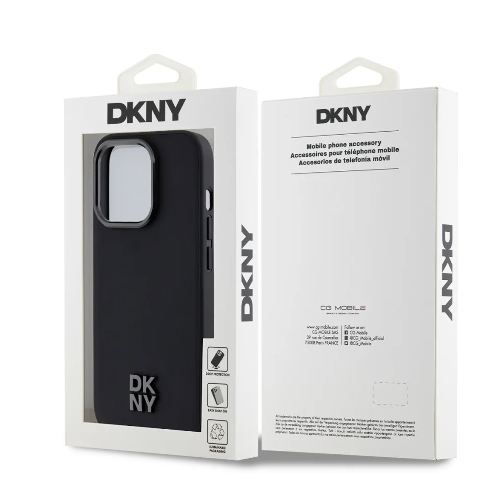 iPhone 15 Pro Max (6.7") hátlap tok, PU / PU bőr, magsafe, fekete, DKNY PU Leather Stack Logo Magsafe