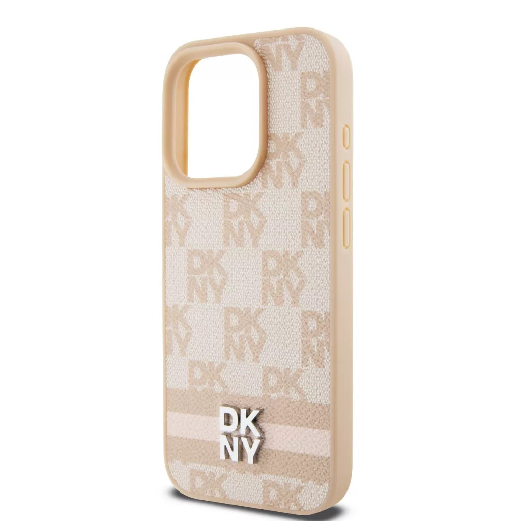 iPhone 13 Pro Max (6.7") hátlap tok, PU / PU bőr, mintás, barackvirág-bézs, DKNY PU Leather Checkered Pattern and Stripe