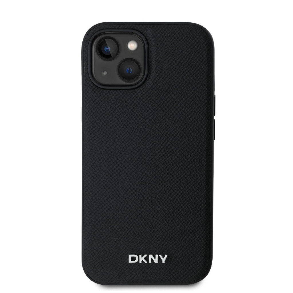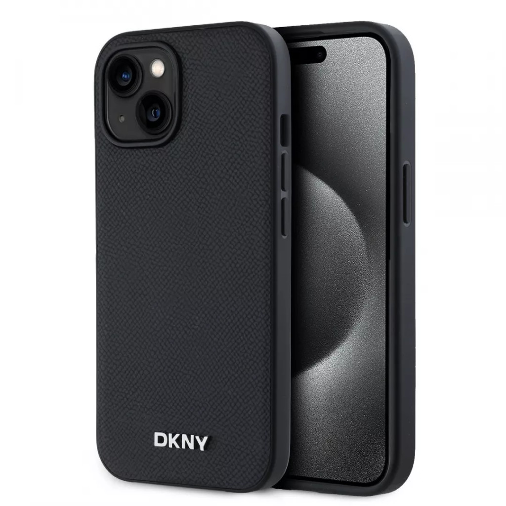 iPhone 15 (6.1") hátlap tok, PU / PU bőr, magsafe, fekete, DKNY PU Leather Silver Metal Logo Magsafe