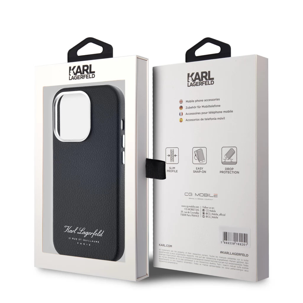 iPhone 16 Pro Max (6.9") hátlap tok, PU, fekete, Karl Lagerfeld Grained PU Hotel RSG