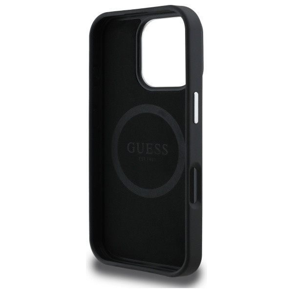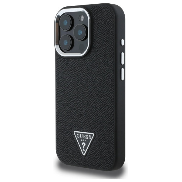 iPhone 16 Pro (6.3") hátlap tok, PU, magsafe, fekete, GUESS PU Grained Triangle Logo
