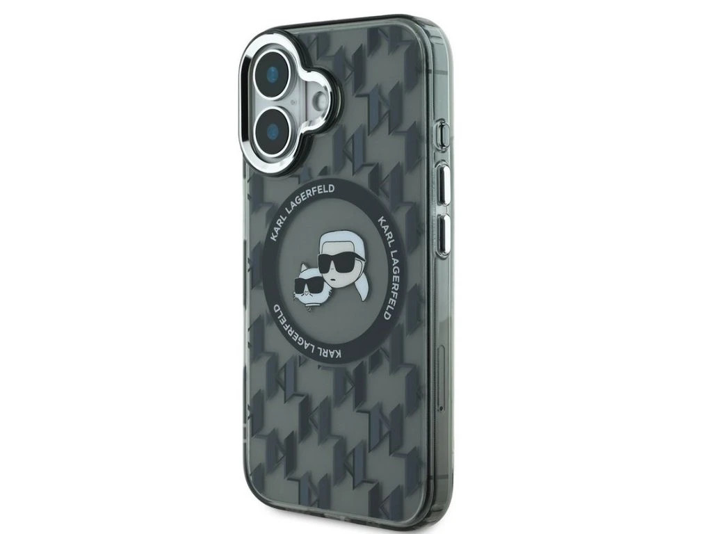 iPhone 16 Pro Max (6.9") hátlap tok, PC/TPU, magsafe, fekete/áttetsző, Karl Lagerfeld IML Monogram K&CH Heads MagSafe