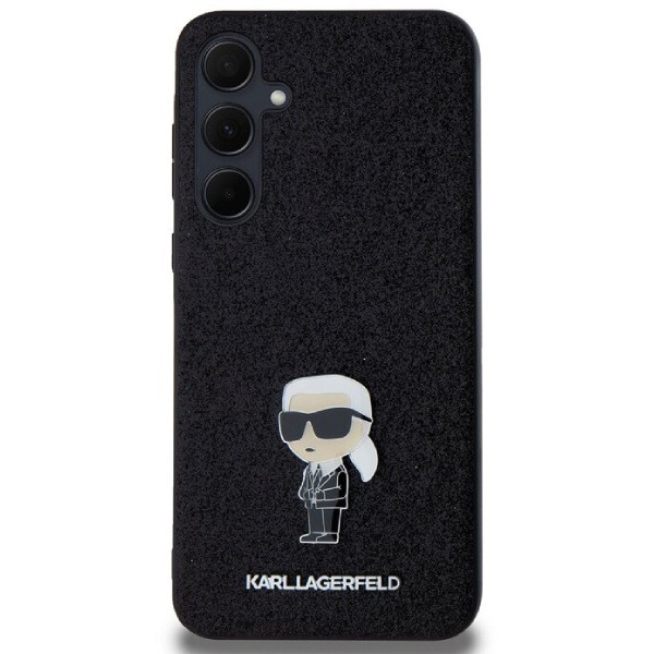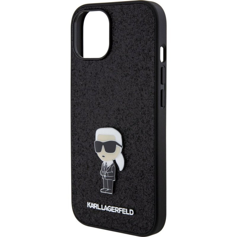 iPhone 16 (6,1") hátlap tok, PC/TPU, fekete, csillámos, Karl Lagerfeld Fixed Glitter Metal Ikonik