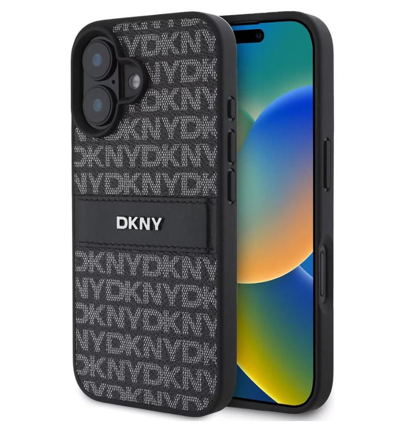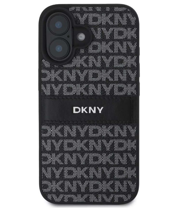 iPhone 16 (6.1") hátlap tok, PU / PU bőr, mintás, fekete, DKNY PU Leather Repeat Pattern Tonal Stripe