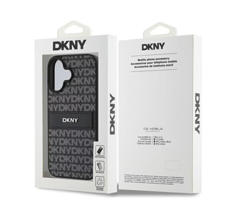 A telefontok dizájnja letisztult, modern esztétikával rendelkezik, a hátoldalon ismétlődő "DKNY" logó mintázattal és egy merész csíkkal, amelyen az összetéveszthetetlen ikonikus logó látható.