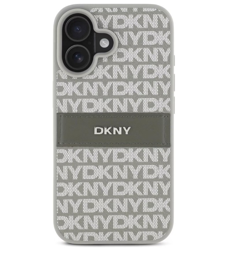iPhone 16 (6.1") hátlap tok, PU / PU bőr, mintás, szürke, DKNY PU Leather Repeat Pattern Tonal Stripe