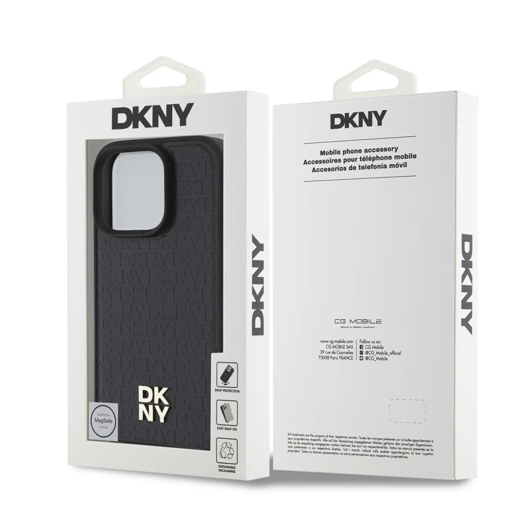iPhone 16 Pro (6.3") hátlap tok, PU műbőr, magsafe, fekete, DKNY PU Leather Repeat Pattern Stack Logo MagSafe