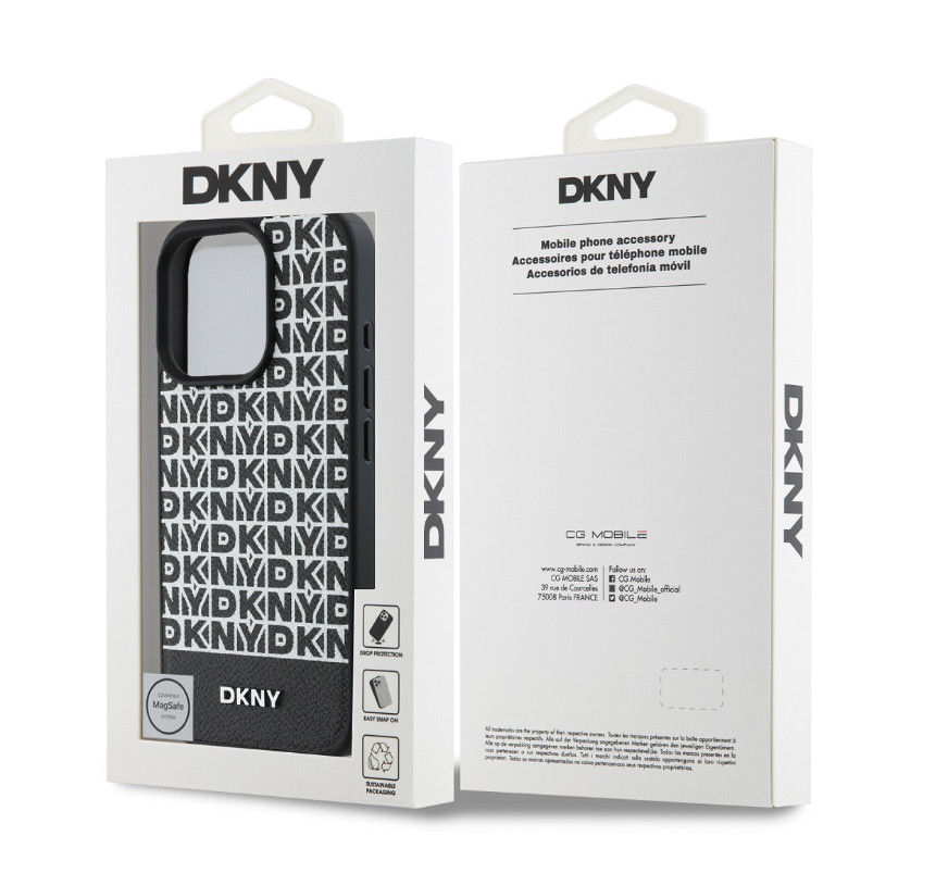 iPhone 16 Pro Max (6.9") hátlap tok, PU, magsafe, mintás, DKNY Repeat Pattern Bottom Stripe MagSafe