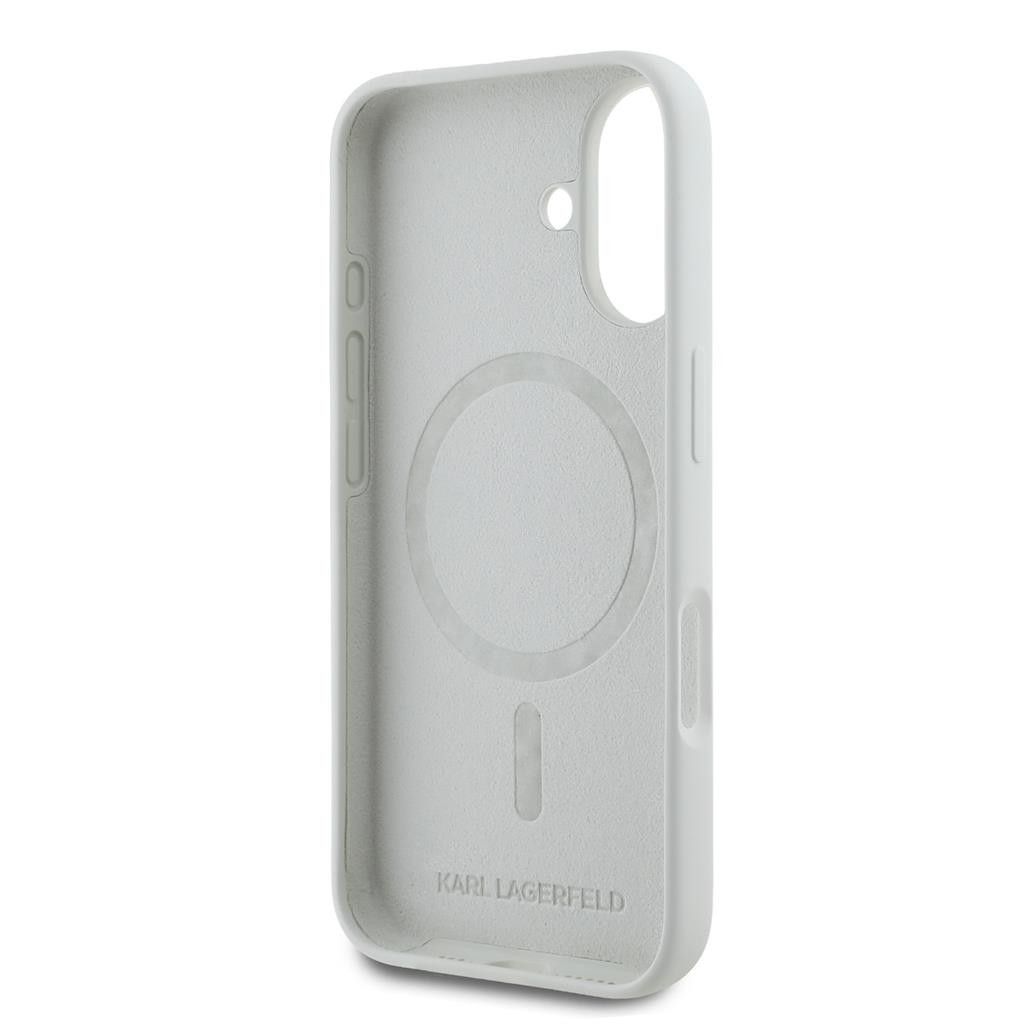 iPhone 16 (6,1") hátlap tok, szilikon tok, magsafe, fehér, Karl Lagerfeld Liquid Silicone K&CH Heads MagSafe