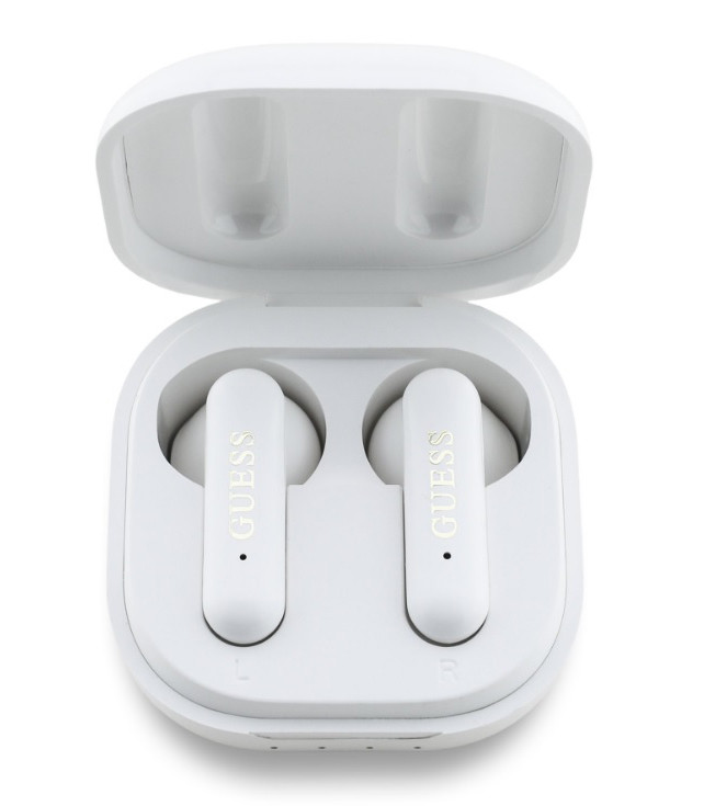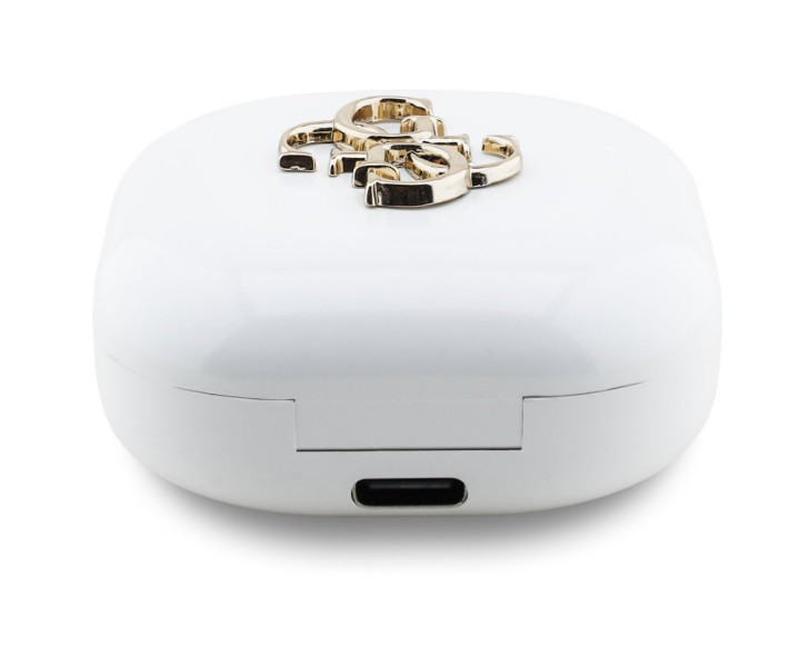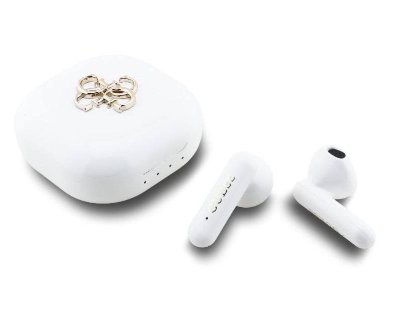 GUESS 4G Metal Logo stereo bluetooth headset vezeték nélküli töltőtokkal, TWS, fehér, GUTWSJ7HE4GH