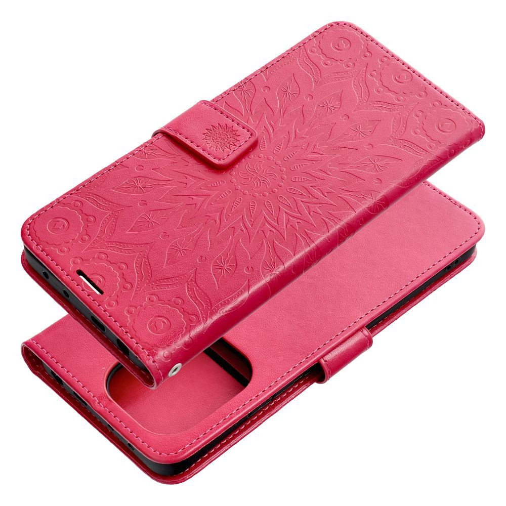 Samsung Galaxy S25 Ultra telefon tok, könyvtok, oldalra nyíló tok, mágnesesen záródó, sötét magenta, mandala, SM-S938, Mezzo
