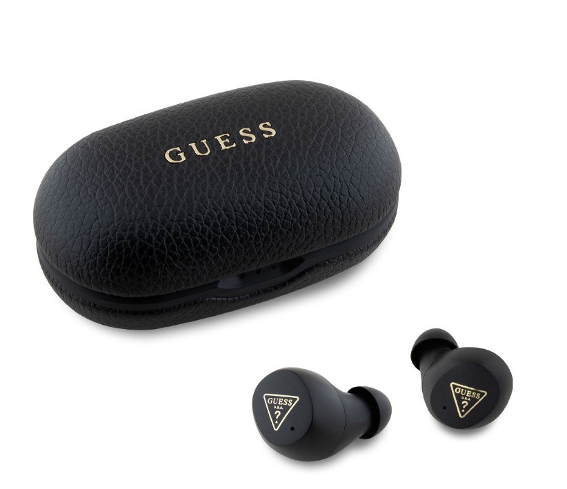 GUESS PU Grained stereo bluetooth headset vezeték nélküli töltőtokkal, TWS, fekete, GUTWSPGTSPSK
