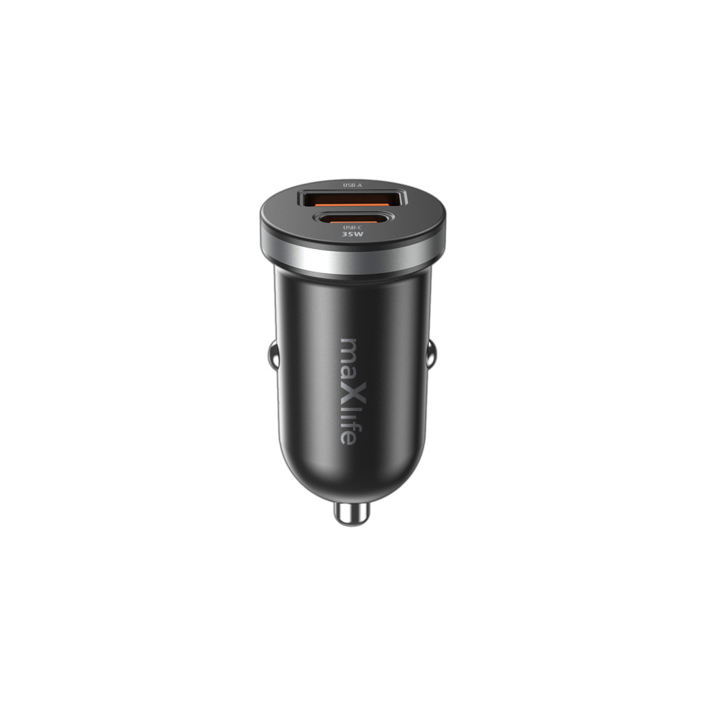 Szivartöltő fej, 1xType-C / 1xUSB, 35W / 3A, fekete, Maxlife MXCC-05-35AC