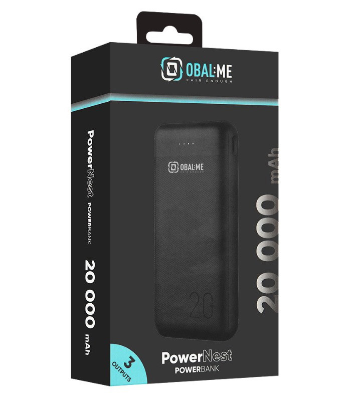 Power Bank, 2xUSB / 1xType-C / 1x micro USB, 20000 mAh / 74W / 2.1A, fekete, OBAL:ME PowerNest