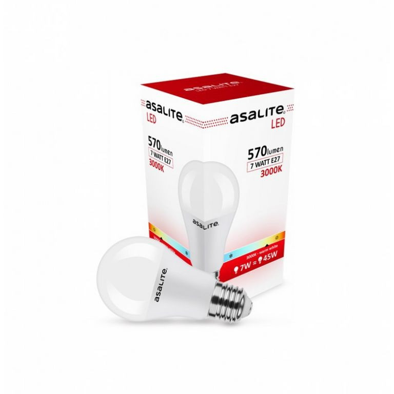 A 7W teljesítményű Asalite LED Izzó kifejezetten magas, 570 lumen fényerőt biztosít 320°-os beterítési szögben.