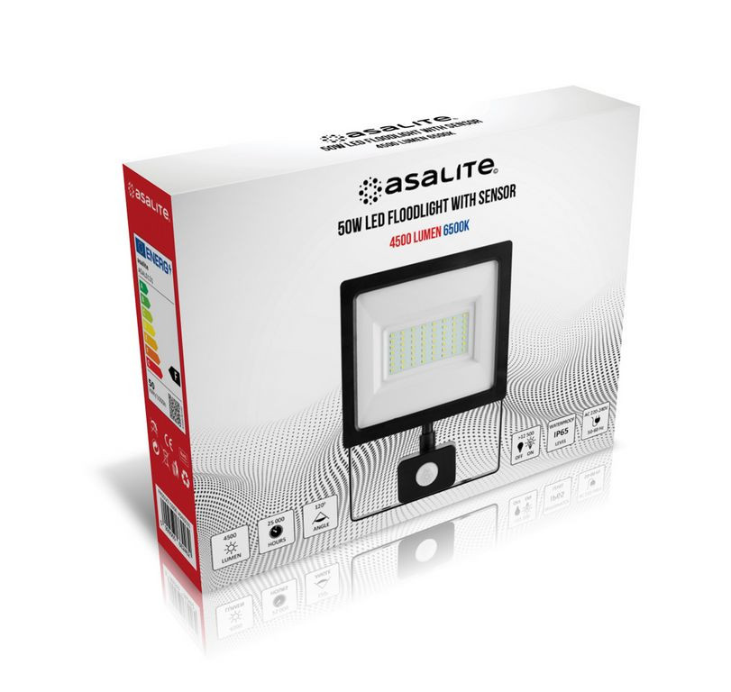 Asalite LED Reflektor Slim 50W 6500K (4500 lumen) + Mozgásérzékelő Szenzor