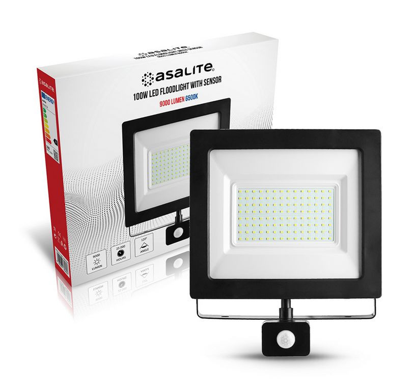 Asalite LED Reflektor Slim 100W 6500K (9000 lumen) + Mozgásérzékelő Szenzor