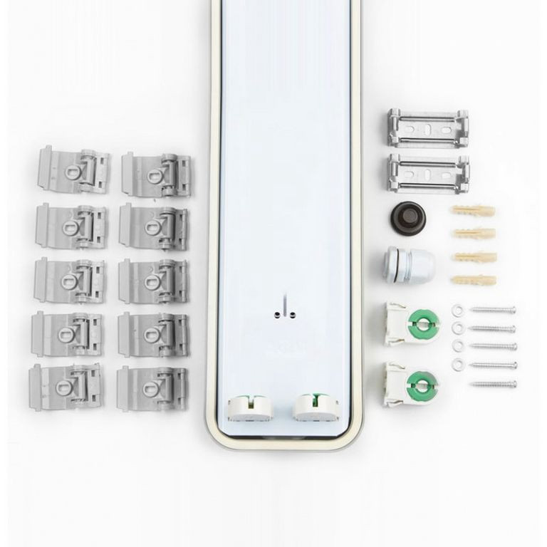 A lámpatest 2 db egy végén betápos 120 cm hosszú, G13 foglalatú LED T8 fénycső befogadására alkalmas.